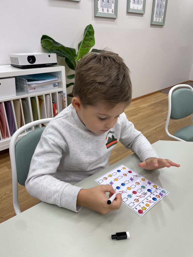 Mänguliste tegevuste kaudu arendame tähelepanu ja keskendumisvõimet, käelist täpsust ning loovust. Uurime tähtede, kujundite ja arvude maailma. Õpetame märkama värve, suurusi ja mustreid.